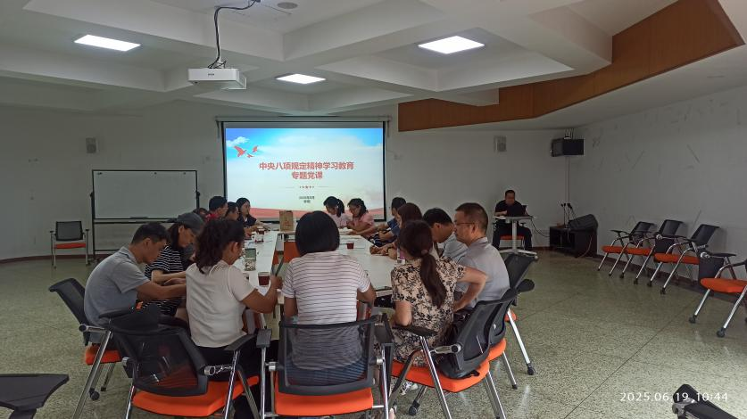 党政党支部于6月12日在信息楼6楼大会议室召开专题学习会,深入贯彻中央八项规定精神学习教育。本次学习采取理论研学和案例警示相结合的方式进行,支部书记冀少君带领全体党员学习了中央八项规定精神及实施细则的核心内容,重点解读了与高校工作密切相关的条款要求。随后,会上剖析典型案例,以案为鉴、以案明纪。6月19日风月同天