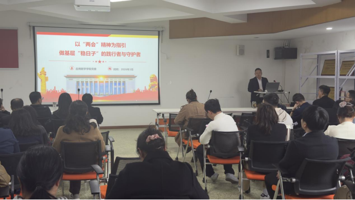 会议伊始,林细俤带领全体教职工开展政治理论学习。他首先以《以“两会”精神为指引,做基层“稳日子”的践行者与守护者》为题,专题传达学习2026年全国两会精神。他回顾了2025年国家经济社会发展取得的主要成就和“十四五”时期我国经济社会发展取得的历史成就,发生的历史变革,并重点围绕李强总理所作的《政府工作报告》中“一体推进教育科技人才发展”“加强基础学科与交叉学科建设”等重要部署进行系统解读;结合当前国内外政治经济形势和2026年政府工作十大任务,引导教职工精准把握政策信号和社会发展趋势,坚持稳中求进工作总基调,践行担当、凝聚合力,将两会精神学习贯彻融入风月同天