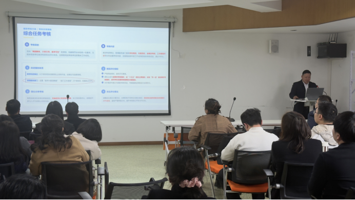 副院长吴泽忠围绕教学工作规范与警示作强调讲话。他结合校内案例开展警示教育,覆盖教学差错、考试疏漏等情形,通过剖析根源与处理结果,强化教职工“敬畏制度、严守规范”的责任意识,杜绝各类教学事故发生,筑牢教学质量底线;同时,他还对年轻教师教学能力提升提出了要求。