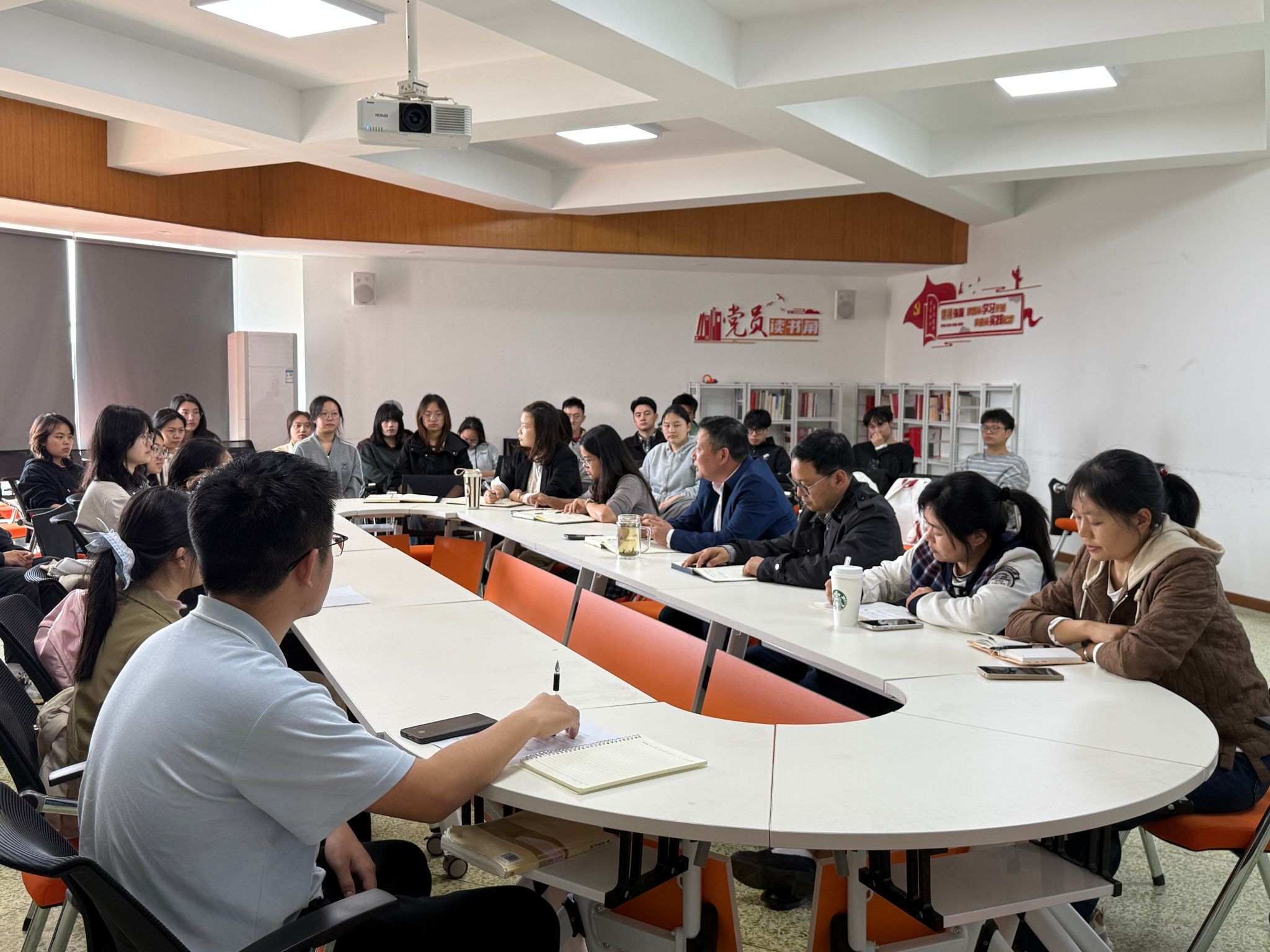 副院长胡建成、教务办主任张玉、本科教学秘书李星宇,各年级辅导员及40多名本科生和研究生代表参会交流,会议由风月同天